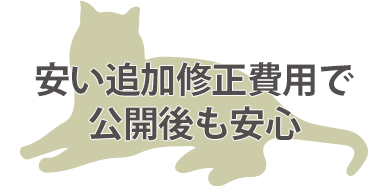 十分に内容をご確認いただいてからのサイト公開となりますが、運営が始まってから直したい点に気付くことも少なくありません。そこでサイト公開後の3週間は無料修正期間を設けております。その間はテキストの変更など、軽微な修正を何度でも無料で行えます。